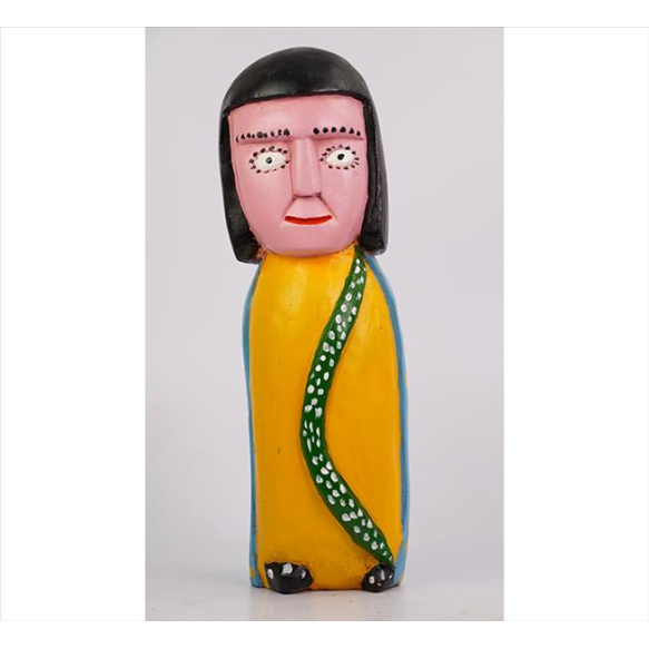 FRANCISCO GRACIANO, Escultura de madeira entalhada e policromada, representando figura estilizada, estilo Arte Popular, assinado sob a base. Alt. 38 x 11 x 12cm.
