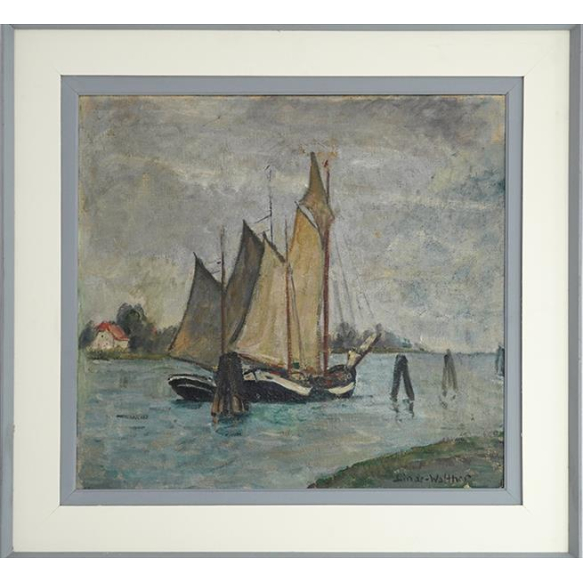 LINDE WALTHER, Barcos, OST, ACID. 57 x 62 cm (m.i)