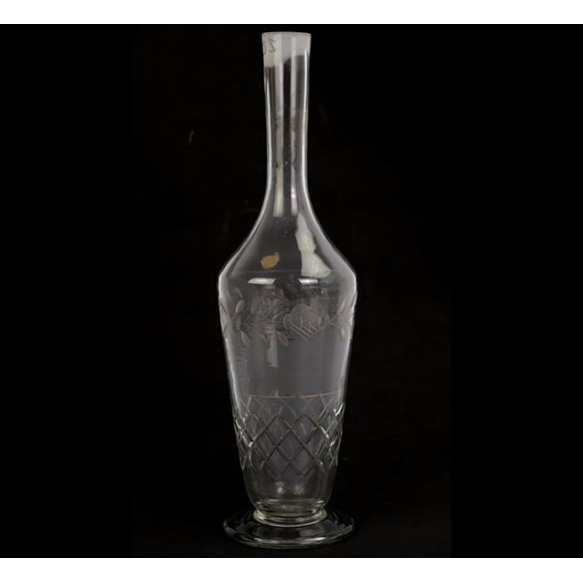 Licoreira de cristal decorada com motivos florais acidados. Alt. 40 x 11cm (sem tampa)
