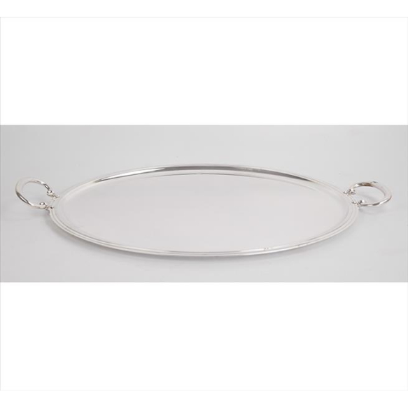CHRISTOFLE, Travessa de metal espessurado à prata, modelo da série Vertigo, formal oval com alças laterais estilizadas, marca da manufatura na parte superior. 63 x 42cm. França, séc. XX