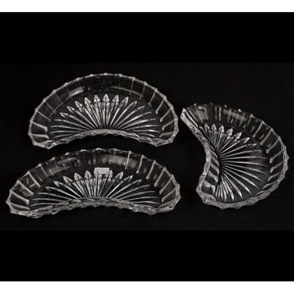 Jogo de 03 covilhetes de cristal lapidado. Europa século XX. 03 x 20 x 10cm cada.
