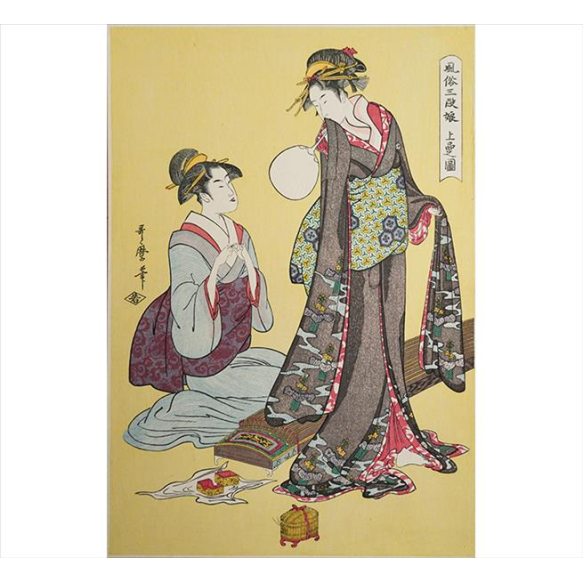 KITAGAWA UTAMARO, Retrato Aristocrático, Xilogravura Ukiyo-e, assinada. 40 x 27cm. Japão, séc. XX (sem moldura)