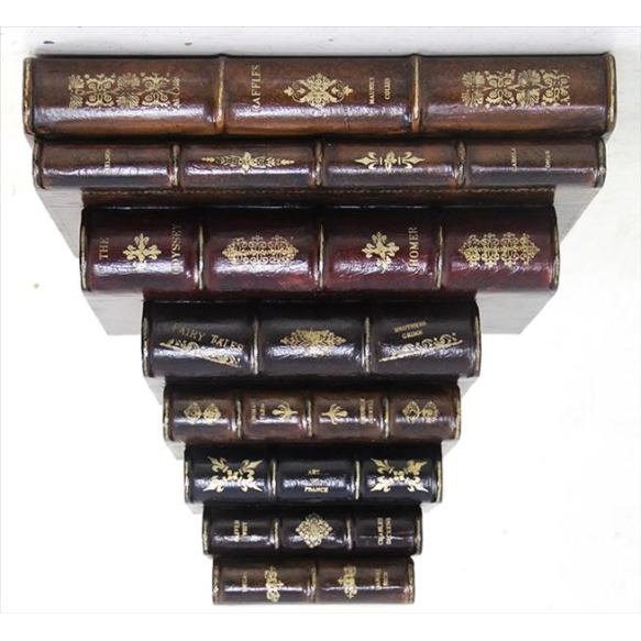 Peanha de madeira policromada em forma de pilha de livros, procedência Giulian Bass. Alt. 38X 38 X 26CM.