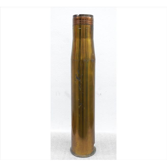 Cartucho de munição, possivelmente 90mm - M19, parte superior adaptada para cinzeiro, inscrições de lote e modelo sob a base (desgastadas). Alt. 64 x 12cm.