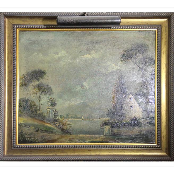 Quadro europeu sem assinatura do artista, Paisagem OST, 69 x 83cm (craquelado / com perda de pigmentos)