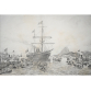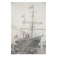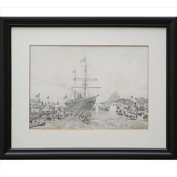 EspañolGASTON ROULLET, Barco a Vela com Vista do Rio de Janeiro, Desenho à Grafite, ACID, 21 x 30cm (m.i). Datado 1879