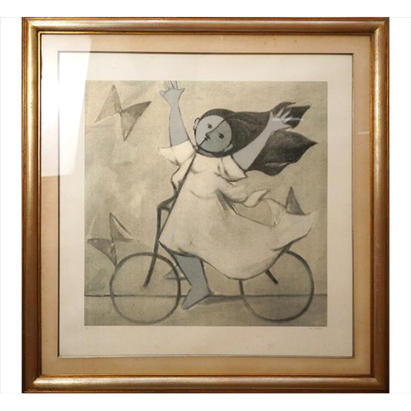 EspañolMILTON DACOSTA, Menina e Bicicleta, Serigrafia, Tiragem 109/150, ACID, 53 x 53cm (m.i) (com timbre do MAM na parte inferior direita)