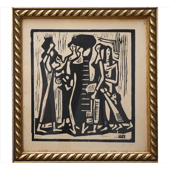 EspañolMARIO ZANINI, Composição com Figuras, Xilogravura, Tiragem 03/40, ACID com iniciais M.Z, 28 x 27cm (m.i)