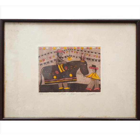 EspañolQuadro com assinatura não-identificada, Catirina e Tripa, Gravura em Metal com interferência, tiragem 05/50, ACID, 12 x 17cm (m.i) Datada 1977