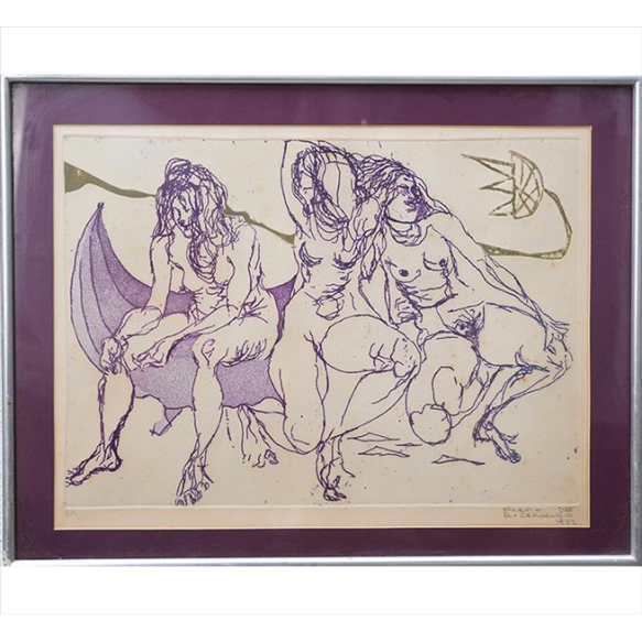 EspañolFLAVIO DE CARVALHO, Figuras Femininas Desnudas, Gravura em Metal, Tiragem P.A, ACID, 35 x 46cm (m.i). Datado 1972 (papel com danificado)