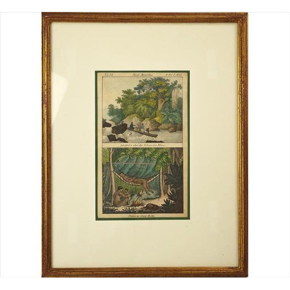 EspañolLitogravura antiga intitulada Sud America. 24 x 14cm. (total c/ moldura). Alemanha, séc. XIX