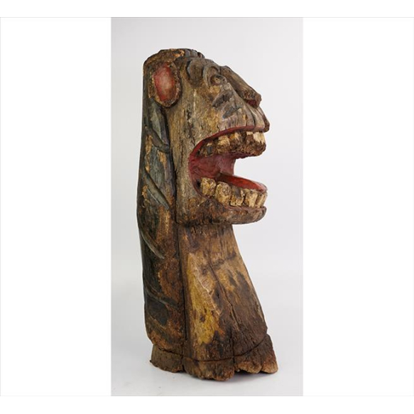 EspañolCarranca regional de madeira entalhada e policromada, com sinais de uso real em navegação. Alt. 70 x 25 x 26cm. Brasil, séc. XIX/XX