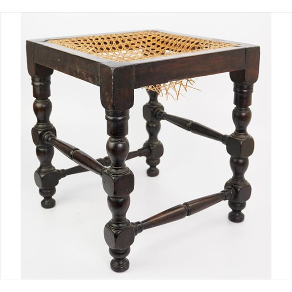 EspañolMocho de madeira nobre com pernas torneadas, assento com palhinha natural. Alt. 41 x 37 x 37cm. Brasil, séc. XIX/XX.(precisa refazer palhinha)