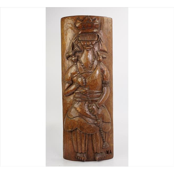 EspañolMANOEL BOMFIM, Talha de madeira representando orixá Oxalá, estilo Arte Popular, assinado. Alt. 70 x 25 x 08cm.