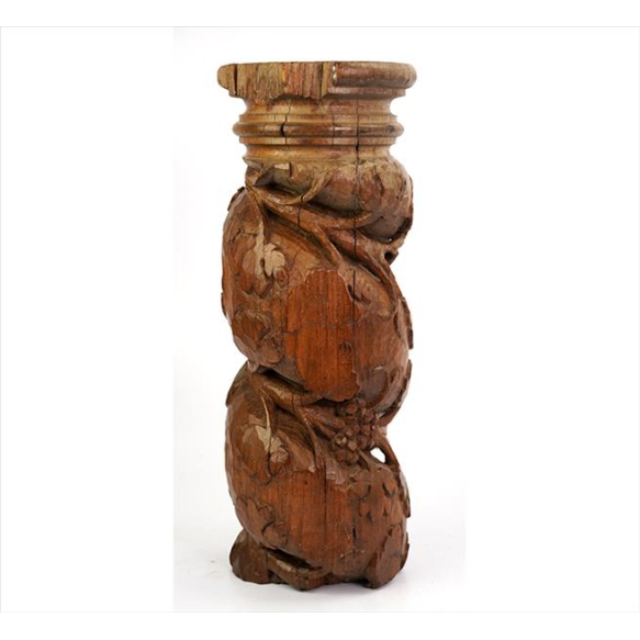 EspañolFragmento de coluna salomônica de madeira entalhada, ornamentada com ramagens e flores. Alt. 45 x 17 x 13cm. Brasil, séc. XVIII