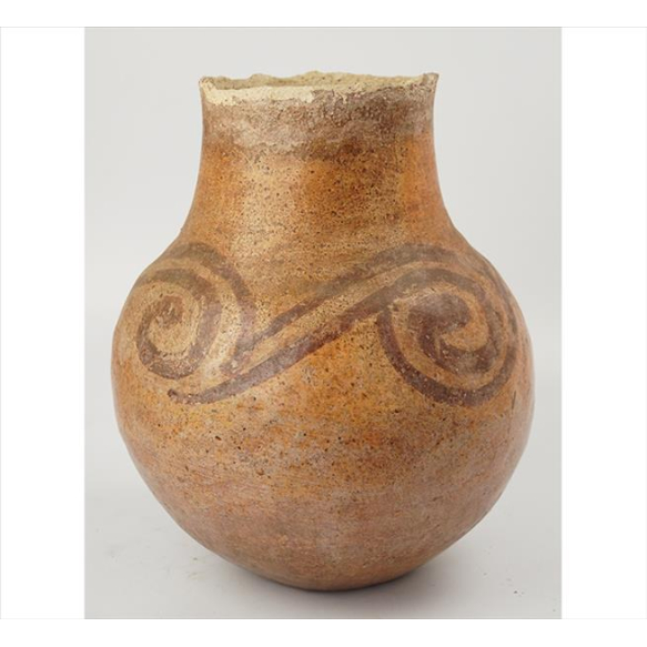 EspañolPote rústico de barro cozido, ornamentado com decoração patinada. Alt. 40 x 31cm. Brasil, séc. XIX