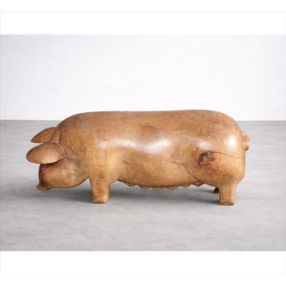 EspañolEscultura de madeira nobre entalhada, representando figura de porca, estilo Arte Popular. Alt. 40 x 88 x 33cm. Brasil, séc. XX