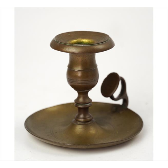 EspañolPalmatória de bronze, ornamentada com frisos. Alt. 19 x 11cm. Brasil, séc. XIX
