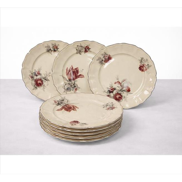 EspañolROSENTHAL SELB GERMANY, Jogo de 09 pratos de porcelana esmaltada, borda cromada, marca da manufatura sob a base. Diam. 25cm. Alemanha, início séc. XX (com pequenos bicados)