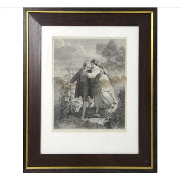 EspañolGravura antiga representando cena idílica, gravada por F. Weber. 30 x 23cm. Europa Início séc. XX (com sinais de umidade)