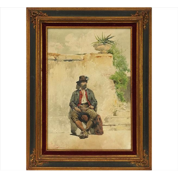 EspañolONORATO CARLANDI (1848 - 1939), Figura Masculina, Aquarela sobre Cartão, ACIE, 44 x 30cm (m.i)