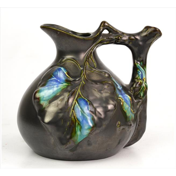 EspañolFIVES LILLE, Jarra de cerâmica esmaltada, estilo e época Art-Nouveau, ornamentada com ramagens estilizadas, marca da manufatura sob a base. Alt. 15 x 16 x 15cm. França, séc. XIX/XX