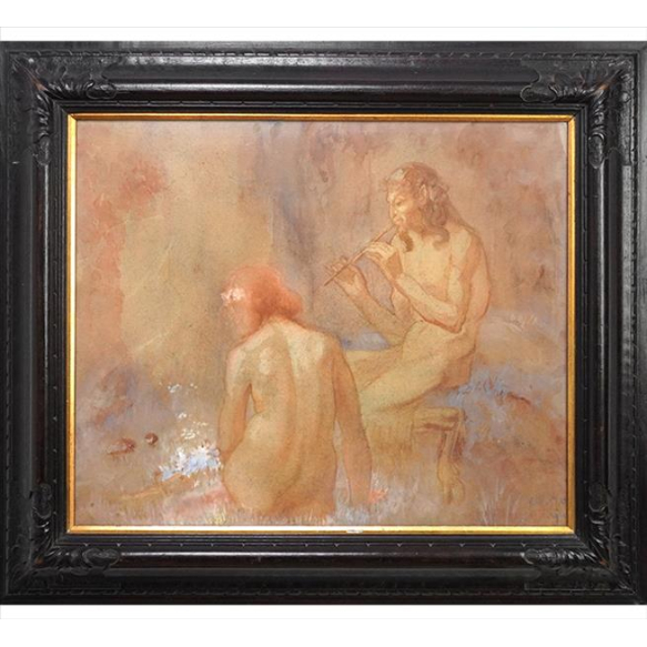 EspañolQuadro com assinatura de artista ilegível, Fauno e Bacante, Sanguínea e Aquarela sobre Papel, ACID, 43 x 53cm (m.i). Datado 1911