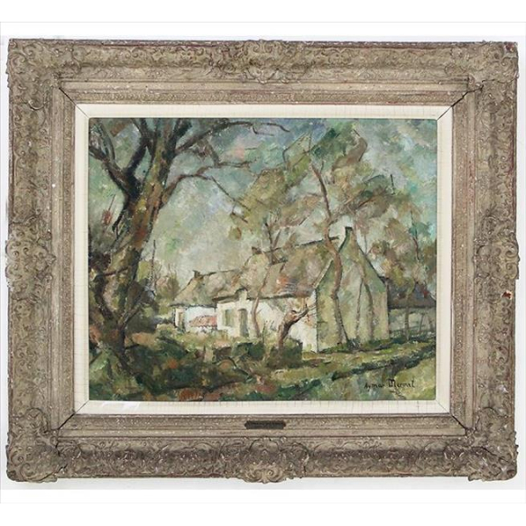 EspañolAYMAR MERMET, Paisagem com Casas, OST, ACID, 54 x 64cm. (Com carimbo da exposição intitulada Exposition Française de 1946 - da importante Galeria Itá) (com plaqueta de Medaille D'or HC) (precisa pequenos restauros)