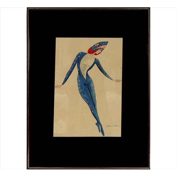 EspañolVLADIMIR TATLIN (1881 - 1973), Mulher Fantasiada, Aquarela sobre Papel, ACID, 40 x 27cm (m.i)