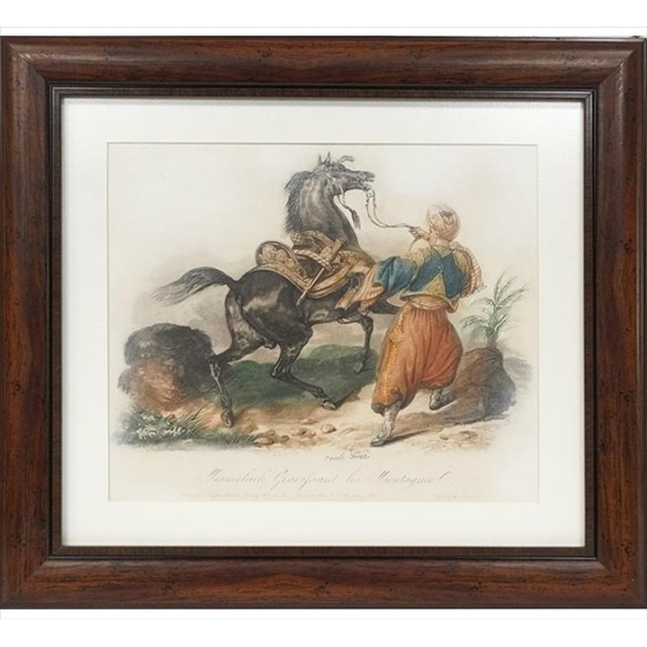 EspañolReprodução offset de gravura antiga intitulada Mameluck Gravifsant al Montagner, 41 x 46cm (total c/ moldura)