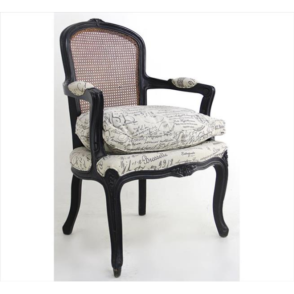 EspañolPoltrona à maneira Luis Felipe, madeira entalhada, recortada e ebanizada, espaldar de palhinha indiana e assento com forração de tecido. Alt. 90 x 60 x 55cm. Início séc. XX (precisa pequenos restauros / palhinha com furo)