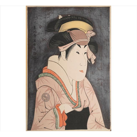 EspañolTOSHUSAI SHARAKU, Segawa Kikunojo III como Oshizu, Xilogravura Ukiyo-e, assinada. 34 x 24cm (sem moldura). Japão, séc. XX