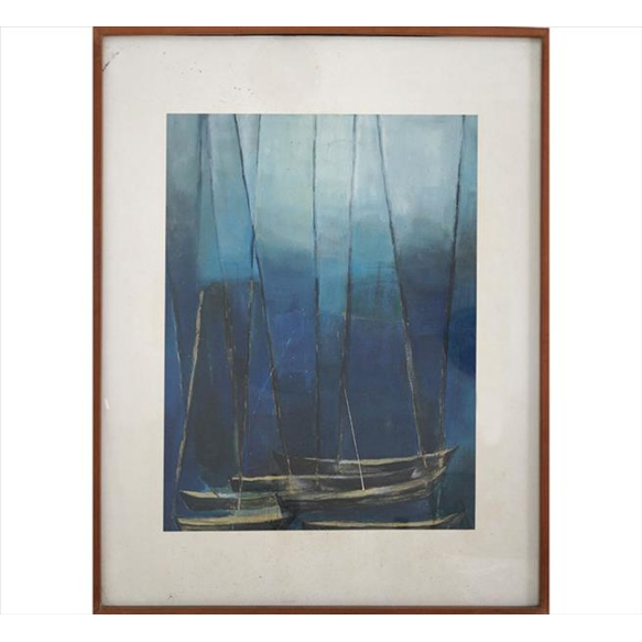 EspañolGISELA EICHBAUM (sem assinatura), Barcos, Guache sobre Papel, 67 x 47cm (m.i). Datado 1975 (com selo da Galeria Documenta no berso) (moldura c/ cupim)