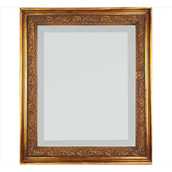 EspañolEspelho bisotado com moldura dourada e ornamentada com ramagens. 49 x 39cm (total c/ moldura)