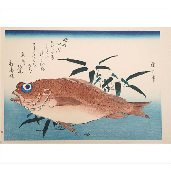 EspañolUTAGAWA HIROSHIGUE, Peixe, Xilogravura Ukiyo-e, assinada. 27 x 40cm (sem moldura). Japão, séc. XX