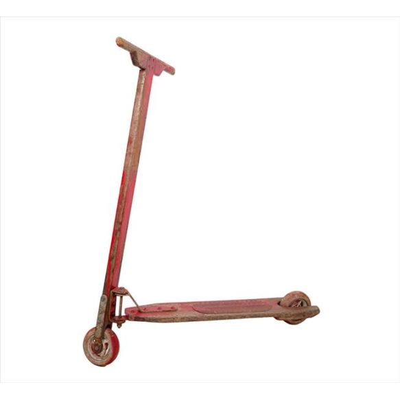 EspañolPatinete antigo de madeira, patinado na tonalidade vermelha. Alt. 88 x 70 x 34cm. Meados séc. XX