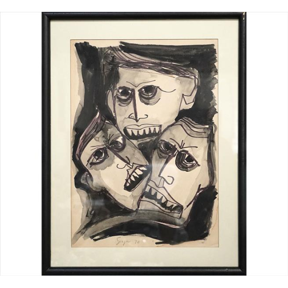 EspañolIVAN SERPA ( atribuido ), Figuras, Técnica Mista sobre Papel, ACIE, 45 x 32cm. (m.i). Datado 1970