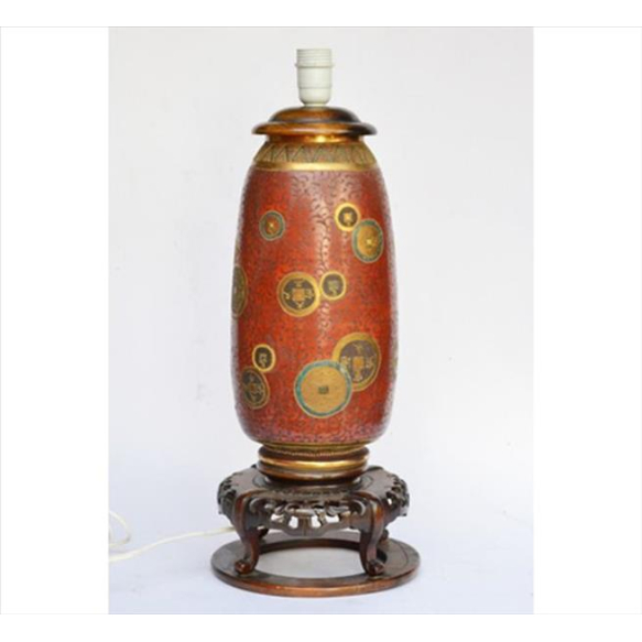 EspañolAbat-jour de porcelana Satsuma, sobre base de madeira entalhada. Alt. 50 cm. Japão séc. XIX/XX