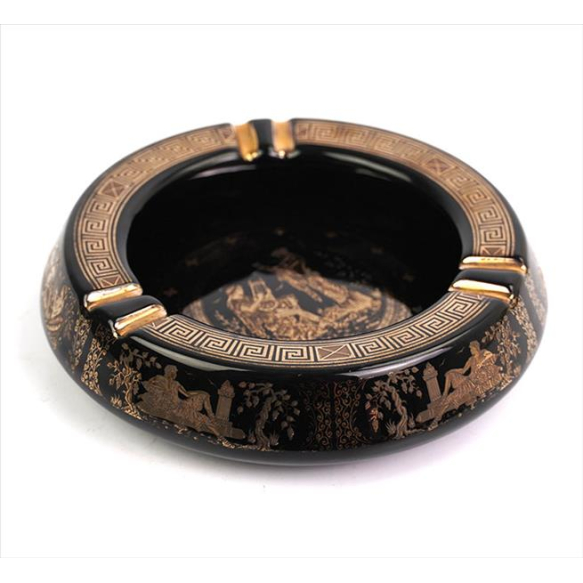 EspañolCinzeiro de porcelana esmaltada, decorado com motivos clássicos, contém incrustação de ouro 24k. Alt. 06 x 21cm. Grécia, séc. XX