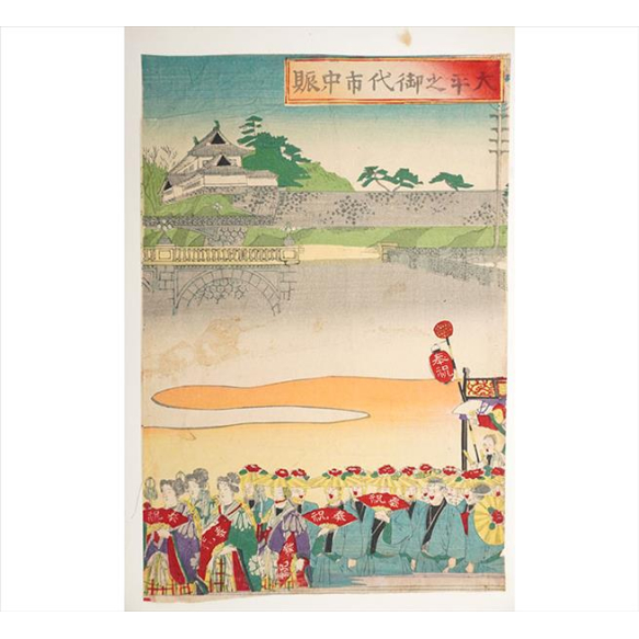 EspañolYOSAI, A Agitação da Cidade na Era Pacífica, Xilogravura Ukiyo-e, assinadam papel washi original de época.. 27 x 40cm (sem moldura). Japão, primeira metade séc. XX