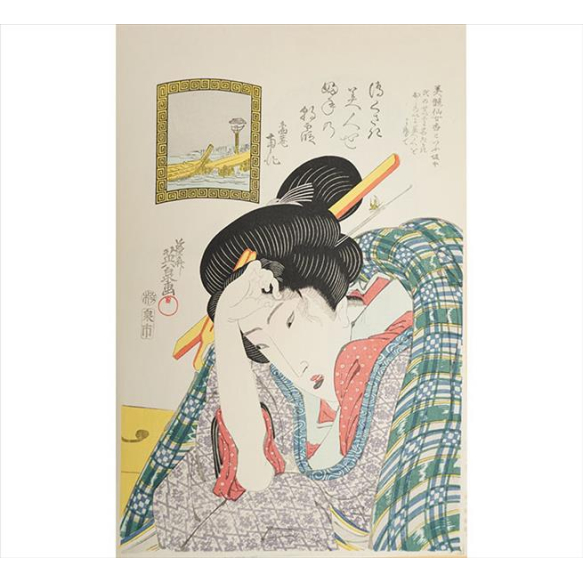 EspañolKEISAN EISEN, Figura Bonita Em Manhã Nublada, Xilogravura Ukiyo-e, assinada. 39 x 26cm (sem moldura). Japão, séc. XX