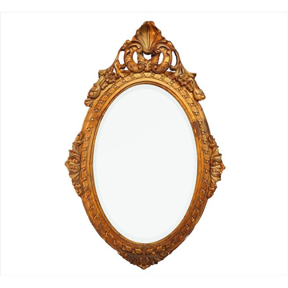 EspañolEspelho bisotado com moldura de madeira entalhada e dourada, estilo Luís XV, ornamentado com caneluras, ramagens e rocalha central. Alt. 114 x 75 x 06cm (Total). Europa, início séc. XX (com pontos de douração tardia)