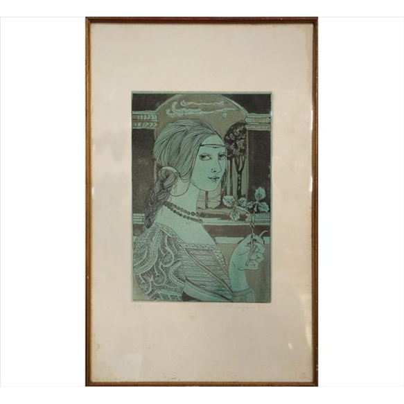 EspañolSONYA GRASSMANN, Mulher com Flor, Gravura em Metal, Tiragem P.A, ACID, 28 x 19cm (m.i)