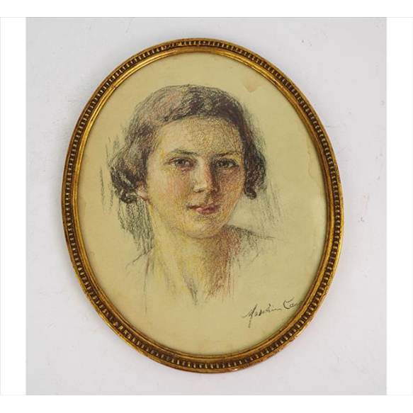 EspañolReprodução offset de obra representando retrato femino. 29 x 23cm. (total c/ moldura)