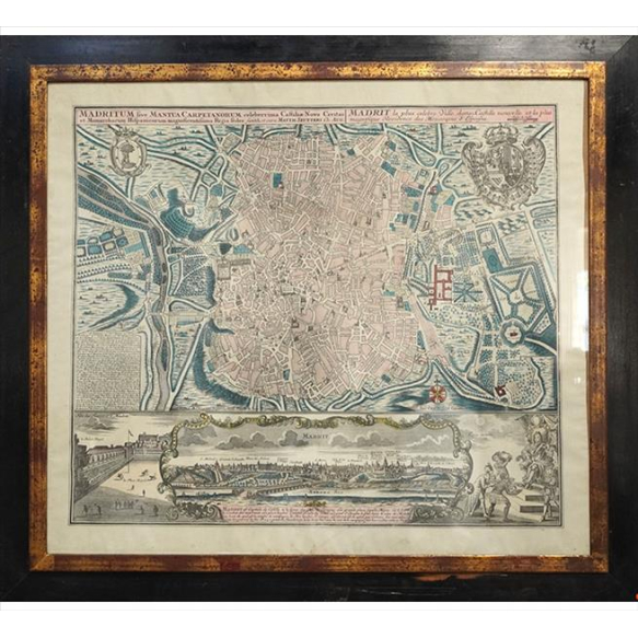 EspañolGravura antiga aquarelada intitulada Madrit. 49 x 57cm (m.i). França, séc.XIX/XX