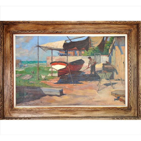 EspañolPAULO DO VALLE JR, Homem, Jangada e Galinhas, OST, ACIE, 62 x 98cm. (m.i). Datado 1956