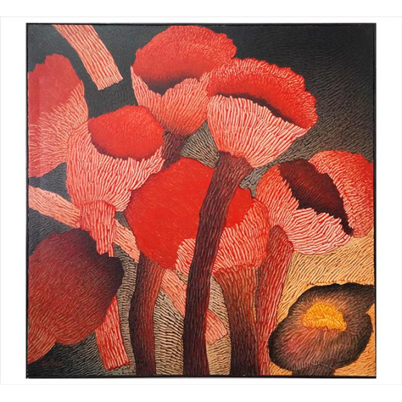 EspañolFERNANDO COELHO, Jardim, OST, ACIE e verso, 90 x 90cm (m.i). Datado 1987 (com selo da Dan Galeria no verso)