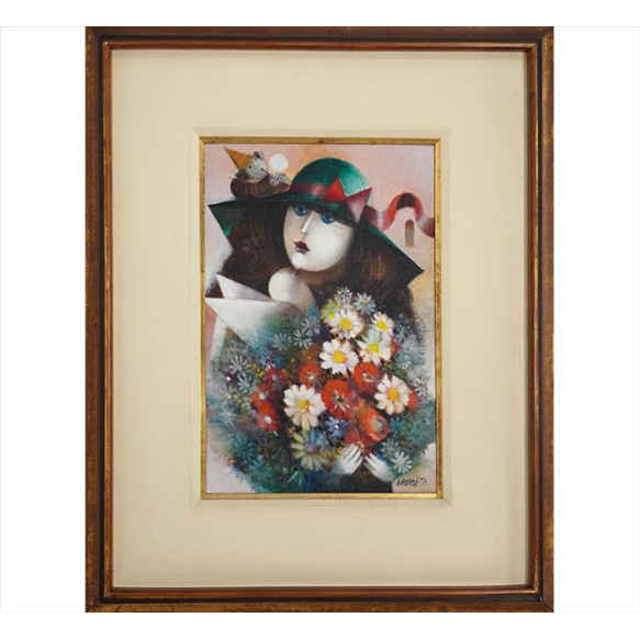 EspañolALEXANDRE RAPOPORT, A Moça e o Bouquet Azul, OST, ACID e verso, 40 x 35cm (m.i). Datado 1977 (com resquício de selo de galeria no verso)