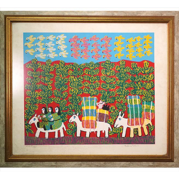EspañolANTONIO POTEIRO, Fuga Para o Egito, Serigrafia, Tiragem P.A V/XV, ACID, 60 x 70cm. (m.i) (moldura com cupim)