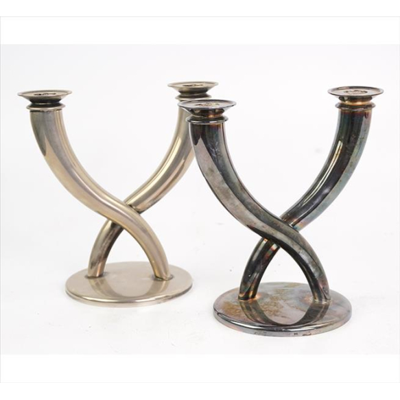 EspañolCHRISTOFLE x GIO PONTI, Par de candelabros de metal espessurado à prata, design feito em colaboração com Gio Ponti, marca da manufatura na base. Alt. 20 x 20 x 13cm cada. Séc. XX